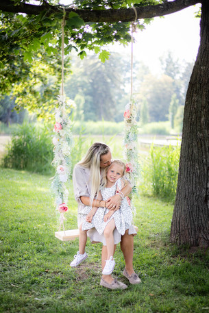 Houpačka je pro dospělé, takže se může fotit buď 1 dospělák s dítětem na klíně nebo 2 děti vedle sebe, ale vypadá dobře třeba i tatínek za houpačkou nebo 1 dítě vedle houpačky.